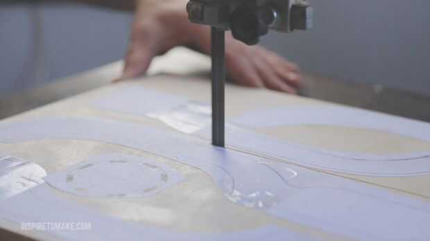 Descargar los planes y pegar a la madera contrachapada. Adhesivo spray hará el trabajo. También se puede utilizar un palillo del pegamento regular.