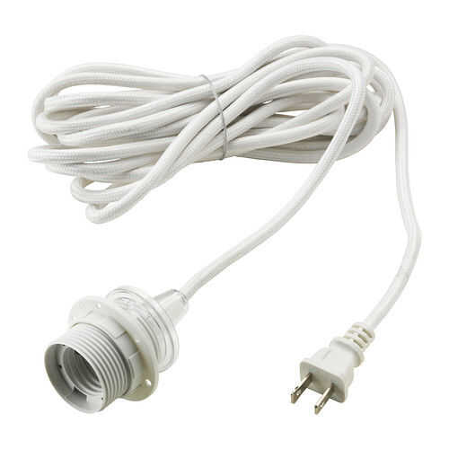 Para mi construir usé el "segundo" cable de alimentación de IKEA. Usted probablemente puede encontrar algo similar en su ferretería local. Pero asegúrese de que tener todo el derecho de las medidas antes de taladrar el agujero para el zócalo de la bombilla de luz en su pieza central.