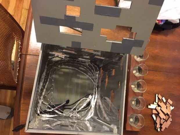 Idealmente sería también desea colocar la iluminación en el interior de los lados de la caja. Esto sería bajarles la parte inferior para poder utilizar el espacio para el almacenamiento. Mi ejemplo no muestra este paso.