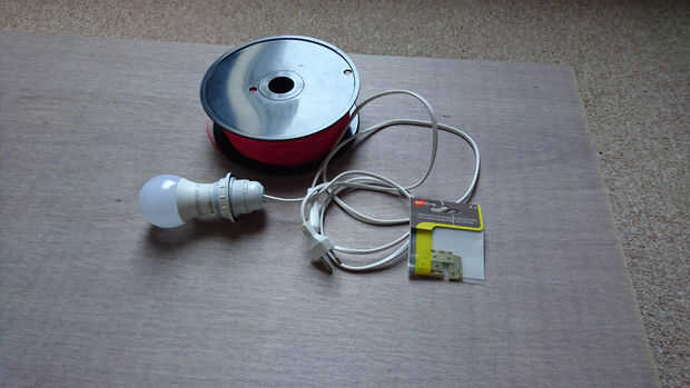 - lámpara, interruptor y un enchufe (puede utilizar a viejo de compran completo). El montaje tiene un diámetro de 4cm, y utilizar una lámpara de 5W led 3, (este da gran luz pero no calientan muy rápido).