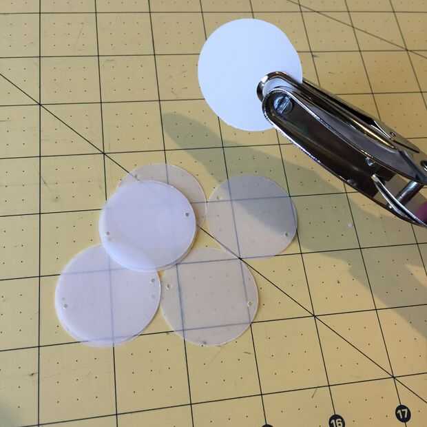 Después de que se utilice su sacador de agujero de 1/16" para hacer dos agujeros en el 90% de los círculos y un agujero en el resto. Los círculos de un agujero va a ser el fondo de cada fila.