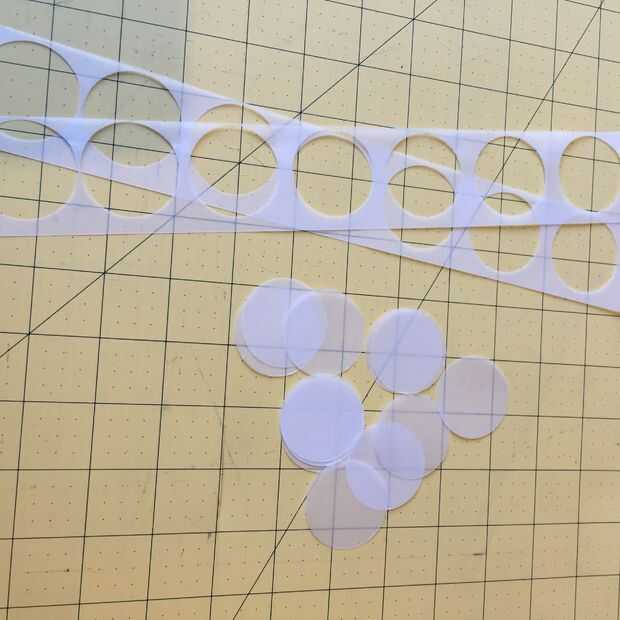 Ahora cuidadosamente Alinee las tiras y cortar los círculos de 1,5". Asegúrese de utilizar cada bit de la misma.
