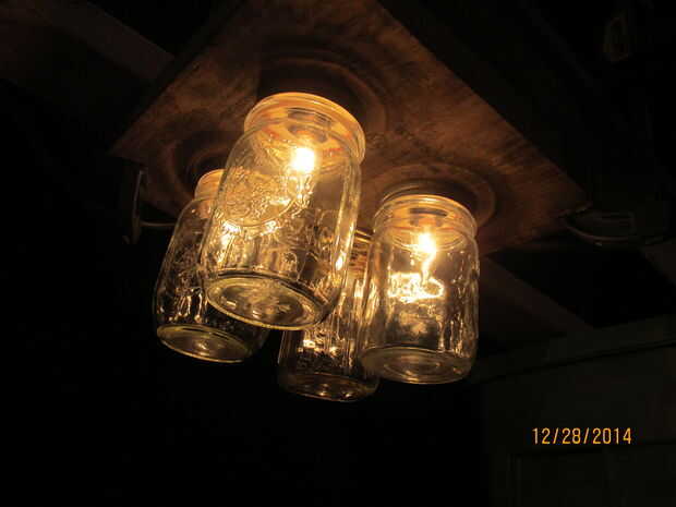 Nos encantan los tarros de masón en mi casa. Además de guardar los alimentos, son grandes para vasos de agua y bloody mary.Vi algo en el internet un tiempo atrás donde alguien había hecho un masón con luz colgante tarros de un tocador barato y pensé