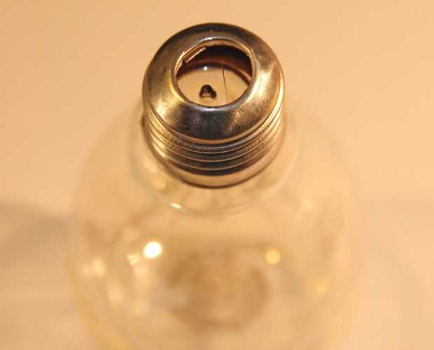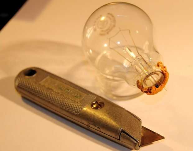 Ahora puede comenzar a cortar la parte metálica y cuidadosamente "roll" el metal de la lámpara como cuando abres una lata con sardinas.