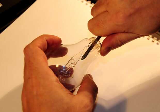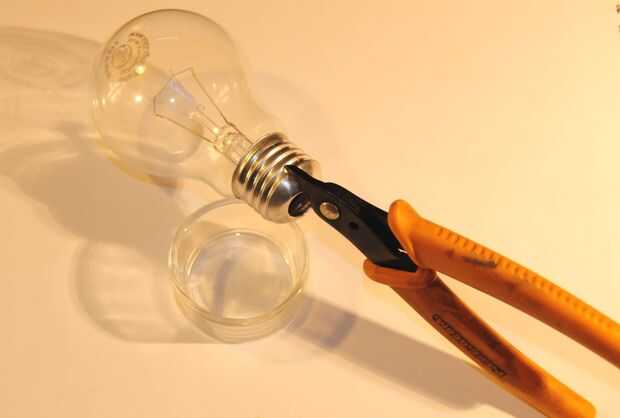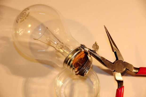 ' Comenzar tomando su wirecutter y tratar de cortar el y a husmear el blob metálico suave en la parte inferior absoluta de la bombilla.