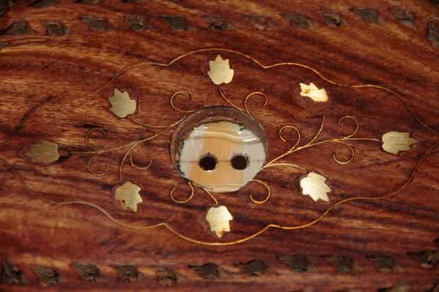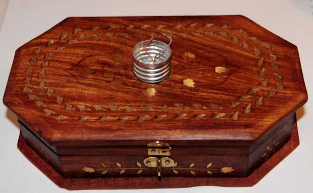 Pega el trozo de madera dentro de la caja y ajustarlo para que encaje los tornillos en el conector de alimentación de la bombilla en su lugar en los imanes y el bulbo se mantiene en su lugar.
