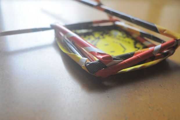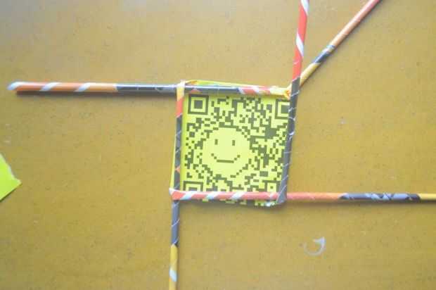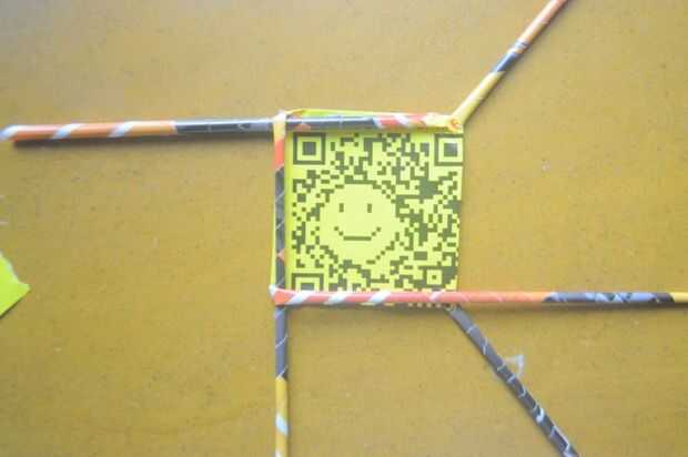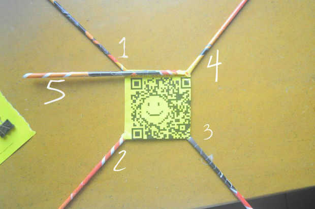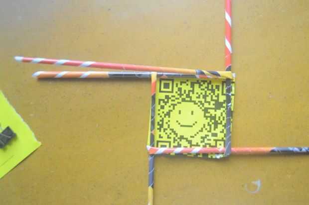 1. tejer comienza con la tubería extra (5). Doble el tubo a la izquierda, alineada con el borde de la Plaza base.