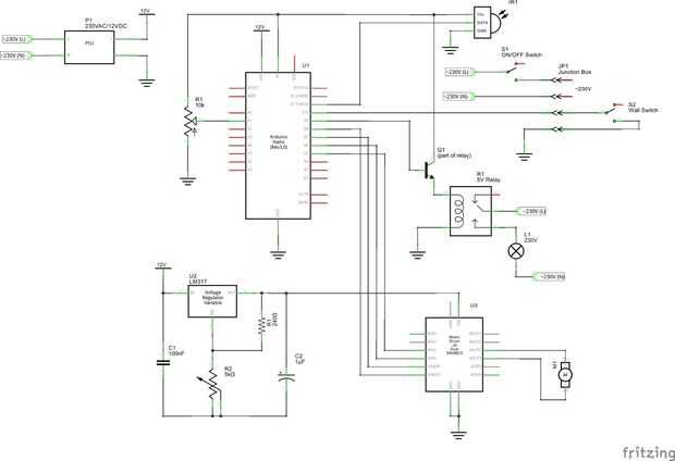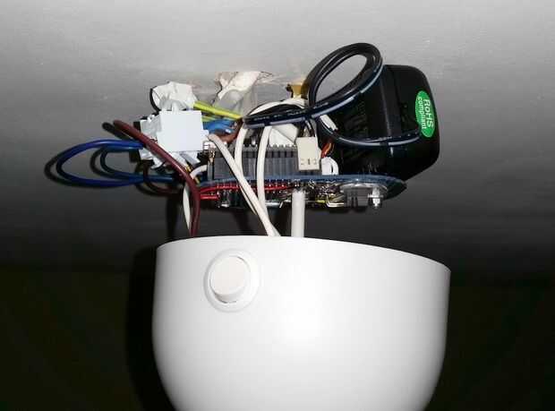 En cuanto al cerebro, he conseguido ponerlo todo dentro de los pabellones. Fue un poco de un desafío como tuve que montar una fuente de alimentación 12V, Arduino Nano micro-controlador, controlador de motor DC, regulador de potencia para motor y 240V relé de DC para controlar la luz sí mismo todo en un solo cuadro. Por supuesto era bien vale la pena como me las arreglé para ocultar la mayor parte de los componentes de la vista de lo que se parecen más a una lámpara estándar como oponerse a un proyecto geek. Incluso mi pareja estaba bien poner en nuestro dormitorio.
