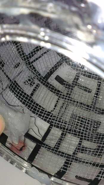 Concreto probablemente no pegue a la silicona correctamente. Así que he añadido algunos Fibatape más sobre las piezas de silicona para que el hormigón tenga algo mejor para agarrar en.