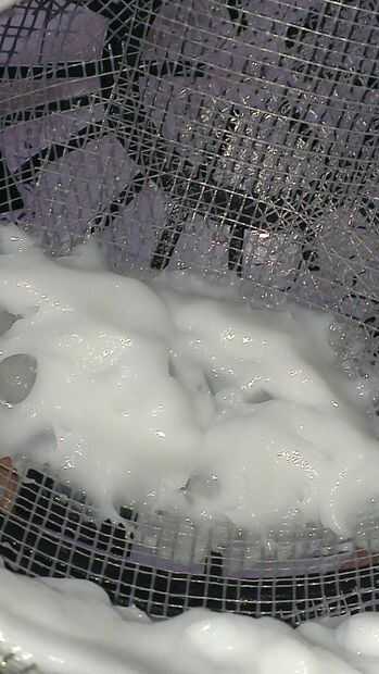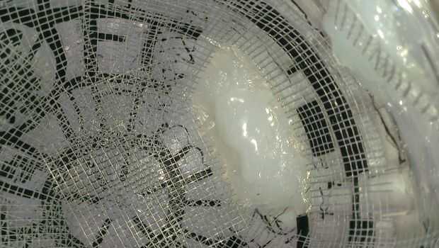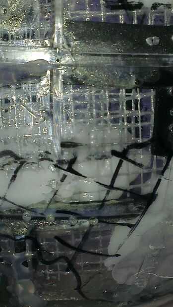 He preparado aproximadamente 1/3 tubo de silicona en el agua jabonosa y cubiertas sobre los contornos de la sección de daños. Fue probablemente alrededor de 1-2cm de espesor. Yo desconfiaba de que lo que es demasiado fino debilitaría pero haciéndolo demasiado gruesa dejaría la luz consiguiendo a través de.