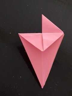 comenzar con una pieza cuadrada de papel de origami(lo que tú color preferido!!!!) Y luego doble el papel por la mitad dos veces y corte el papel en cuatro cuadrados.Paso 1: Iniciar 2 Con uno de los cuatro cuadrados, doblar por la mitad, doblando la