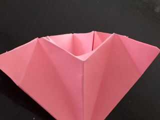 La papiroflexia con el apunte final hacia abajo, cavar en los dedos en el centro de la parte superior y abra hacia fuera la estrella de la parte inferior.