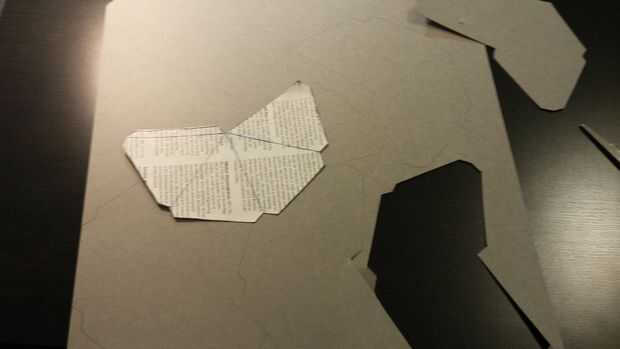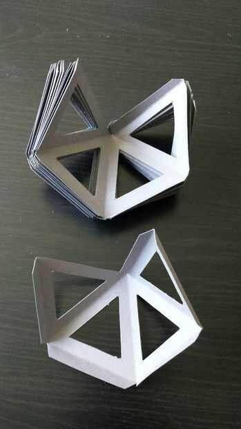 Coge la plantilla y comenzar a remontar 18 de ellos en su cartulina gruesa. Cortamos todo y pliegue las líneas discontinuas indicada en la tercera foto de arriba.