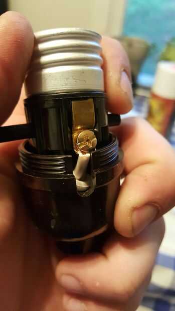 -Con cuidado Destornille la parte superior de la Asamblea de la lámpara para obtener acceso a los cables conectados con 2 tornillos.