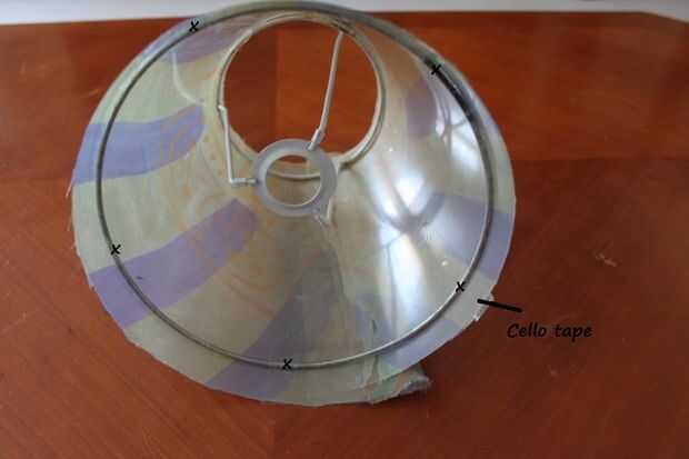 A attatch la tela estructura mi esposo me ayudó para sostenerlos en position.while exacta sostenía el marco y los anillos juntos sticked cellotape en cinco lugares para que sea estable... Consulte el cuadro marcado x (cinta de cello) y luego pegar las uniones con pegamento Uhu. Se puede también usar la pistola de pegamento.