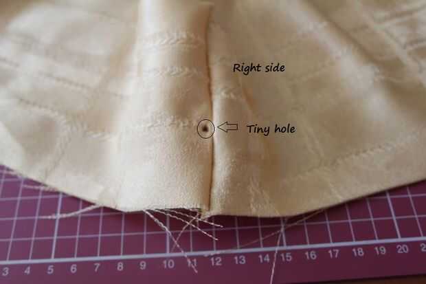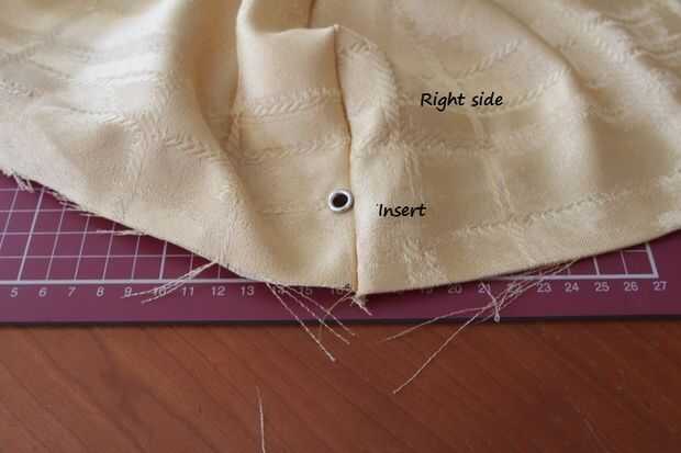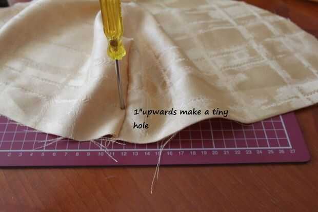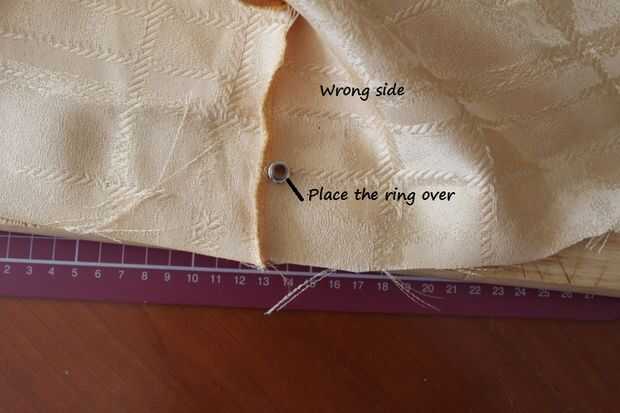 Fig 5 muestra el cable anillo estallido de salida en el lado equivocado de la tela. Coloque el anillo pequeño en la parte superior del anillo grande que fue inserted(Pic6)