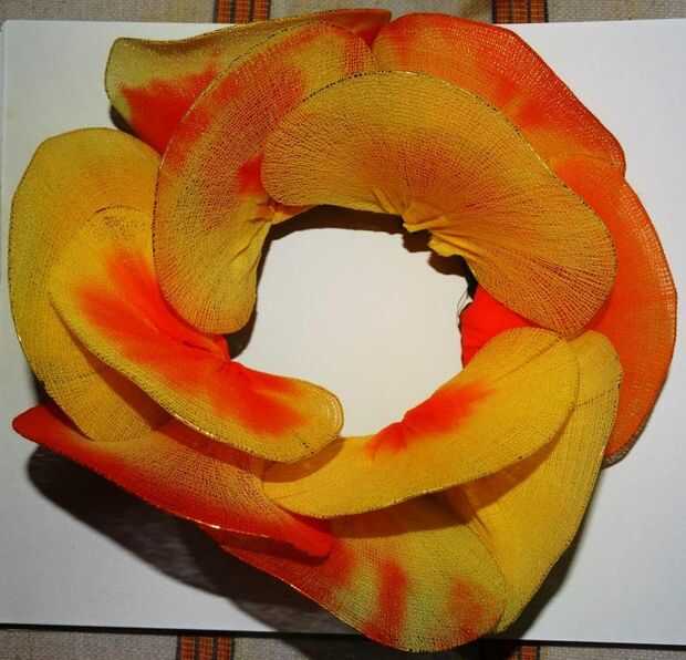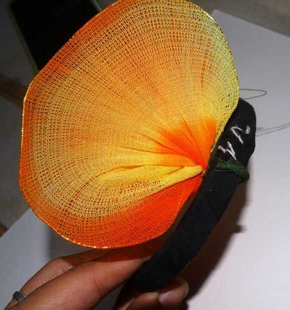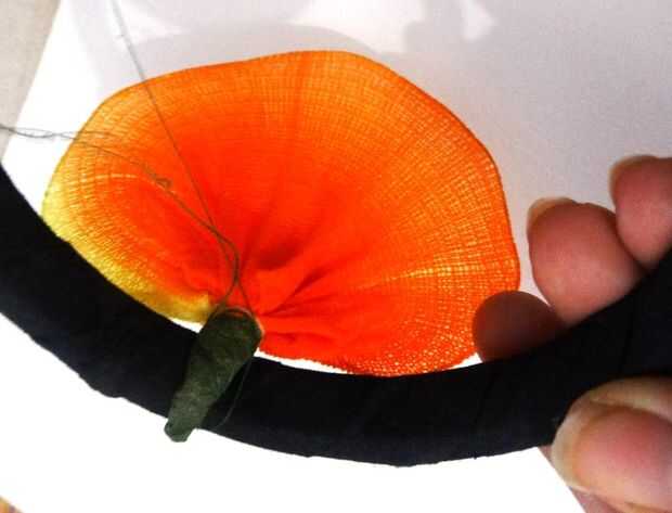 Iniciar conexión pétalos al anillo base, atar el pétalo base con anillo con rosca. Como se muestra en la imagen.
