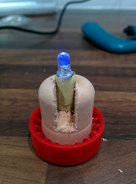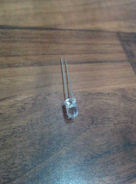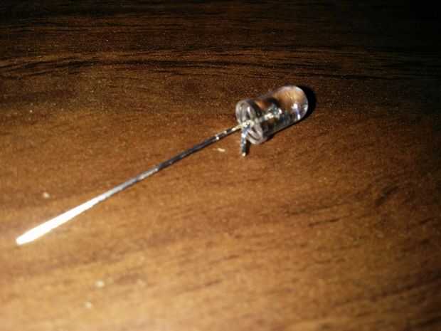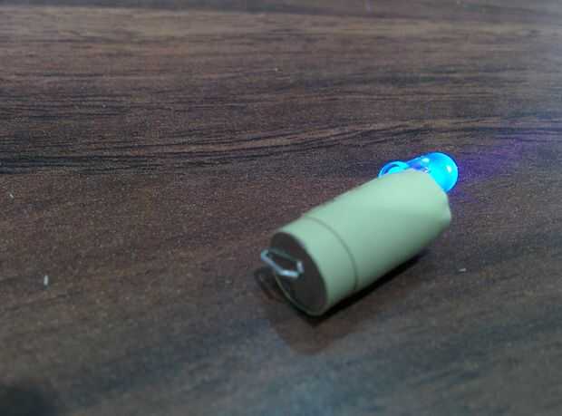 LEDs tienen una pata positiva y negativa. El LED tendrá un borde plano de un lado, la pierna de este lado es la pata negativa. Corte este tramo por lo que hay alrededor de 3mm que se extiende desde el LED. Coloque la pierna sin cortar contra la pila de pilas para que la pierna corte toca la parte superior de la pila de pilas, este debe ser el terminal negativo. Ahora el pata larga al lado de la pila de la cinta y doblar para que toque la base, este debe ser el terminal positivo. El LED ahora debe ser brillante. (Para desactivarlo debe capaz de girar el LED y mueve las patas de las terminales de la batería)