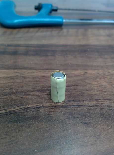 Tomar sus células botón apilarlos y envolverlos en cinta. Utilice la hoja de bisturí para recortar cualquier exceso cinta.