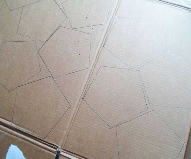 Los lados de los pentágonos que hice son 6cm de largo (2,36 pulgadas) pero esto depende de usted de todos modos. Lo más importante es que todos los pentágonos deben ser iguales. Trate de ser lo más preciso posible.