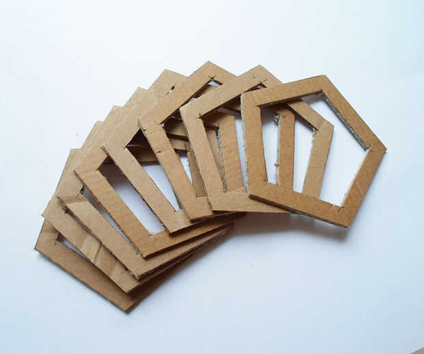 Dibujar aproximadamente 8 nuevos pentágonos en la cartulina, al igual que las que hiciste en el paso 2.