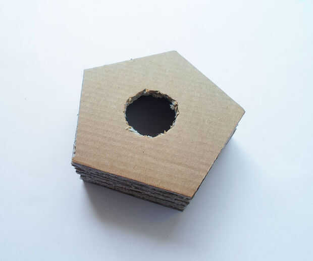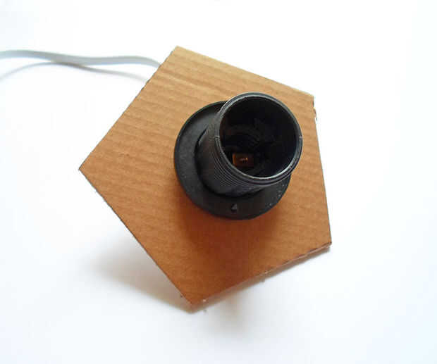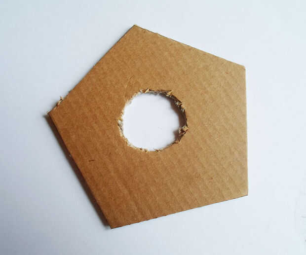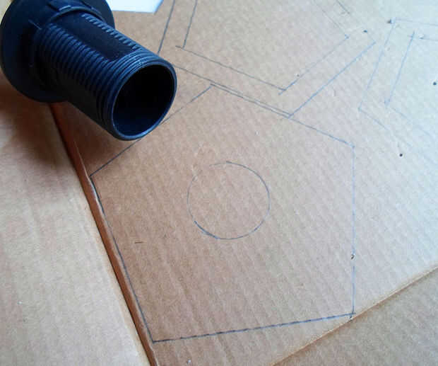 Por lo tanto, dibujar un Pentágono más sobre cartón, al igual que los anteriores y dibujar el contorno de su sostenedor de bulbo en el centro.