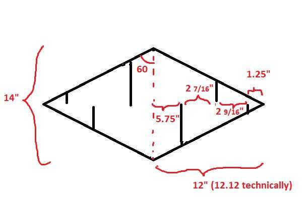 Cortar el mylar 8 diamantes, cada 14 pulgadas de alto, con ángulos de 60 grados (como dos triángulos equiláteros).