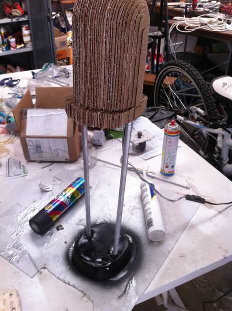 Utilicé el fondo de una botella de detergente como la base de la lámpara. (pulverizar con spraypaint negro)