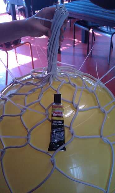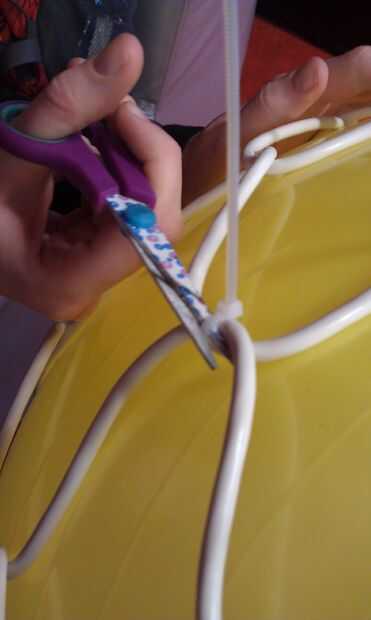 Empezar a tejer los cables como ves en la imagen. Tienes que hacer 6 hileras. Cada conexión de los cables del pegamento y fijarlos con bridas fila por fila. El pegamento necesita 20 minutos para secar.