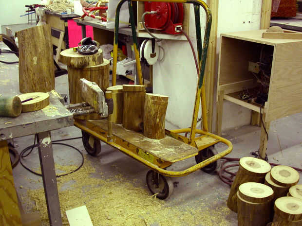 * Por favor disculpa mi fotografía aquí en este paso. Estas fotos son de hace mucho tiempo, otro proyecto donde construí altavoces pequeños de árboles. Muestra exactamente el mismo proceso para rebanar las espaldas del registro y eliminar la sección de centro de madera de árbol rondas.