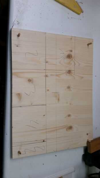 Puesto que el bulbo es relativamente grande que quería crear una base igualmente grande. Tomé unas maderas tenía por ahí y esta cortado con una sierra de calar a 4 partes con las mismas dimensiones. Al principio mi plan era incrustar un arduino con un relé y un sensor de detección de movimiento, pero tras el primer fracaso de este proyecto y el resultado de la segunda prueba, no tengo suficiente espacio en el bloque de hormigón.