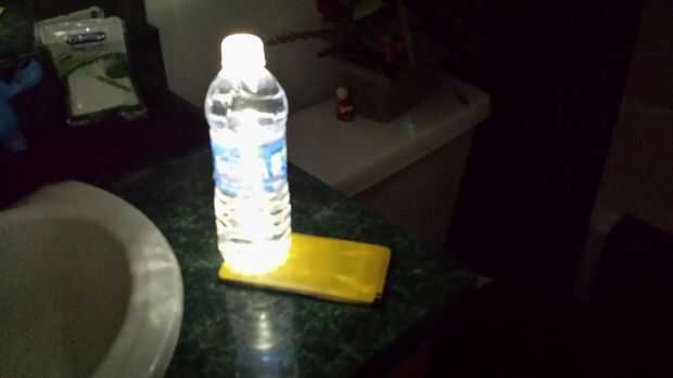 Coloque la botella de agua encima de la luz y al instante tienes una lámpara de