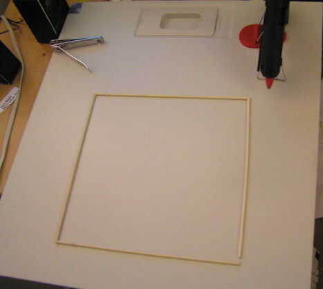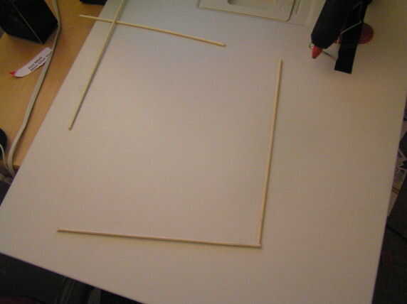 Cortar dos cosas de palillo-como (en lo sucesivo denominados "palos") a la altura de su marco y dos para el ancho de un lado.