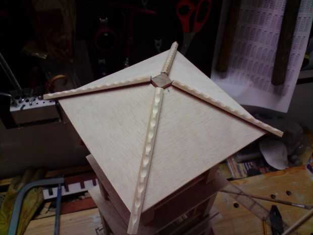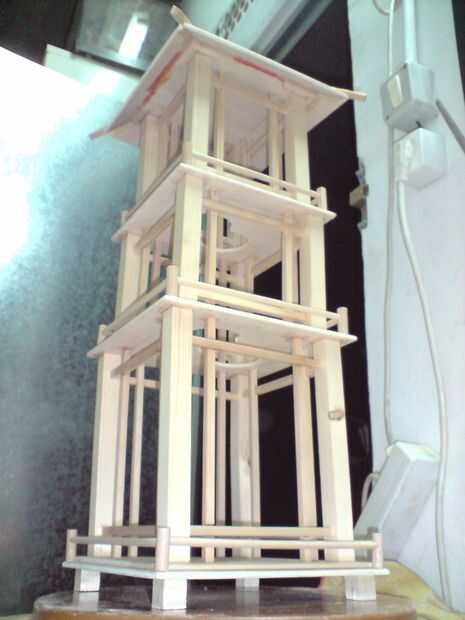 El segundo paso será construir cercas para cada piso. Utilizando palillos circulares y el taladro se hacen 2 agujeros en cada una, con aproximadamente 90 grados de diferencia. También si lo desea, sería una buena idea fijar un clavo pequeño en la parte inferior de cada una de las columnas.