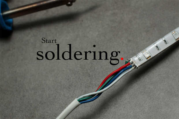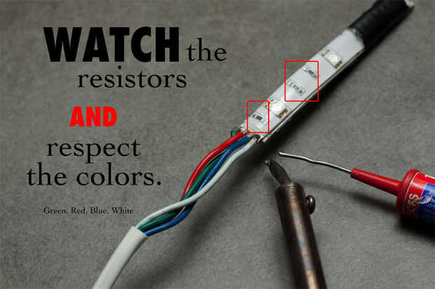 El cable blanco conecta con el + 12V marca, impreso en la tira de LED.