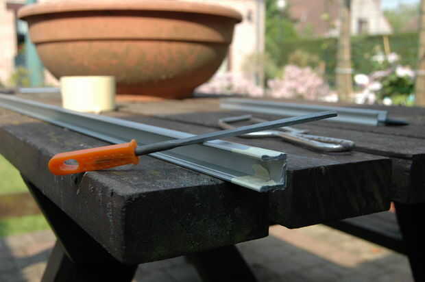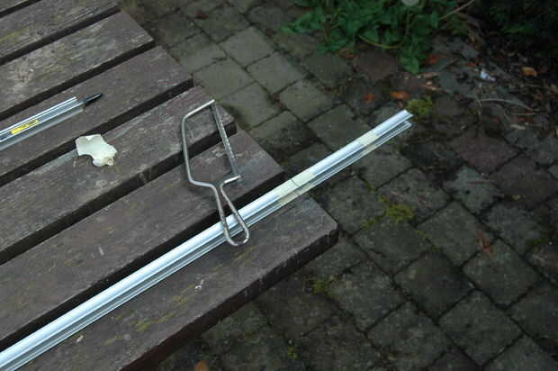 Utilice una sierra de metal para cortar los pedazos de Perfil de aluminio.