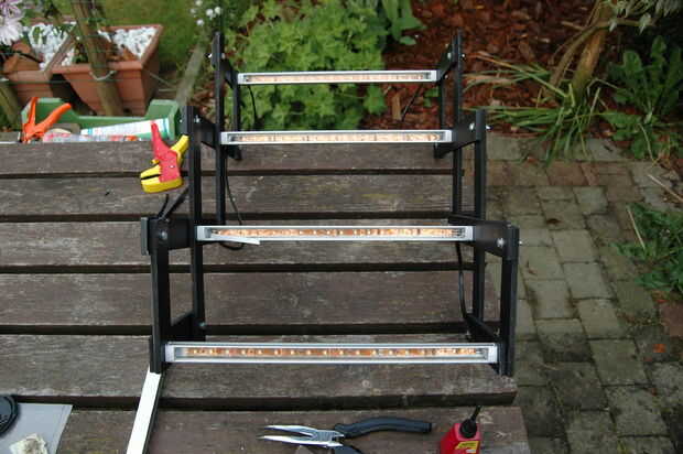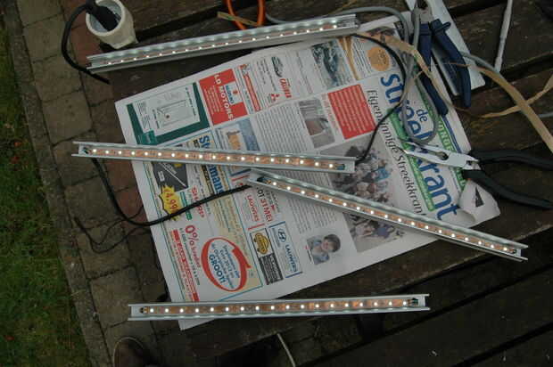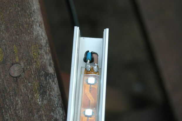entonces u colocar estas tiras de LED en los perfiles, coloque el cable dentro del agujero y luego soldar las tiras entre sí.
