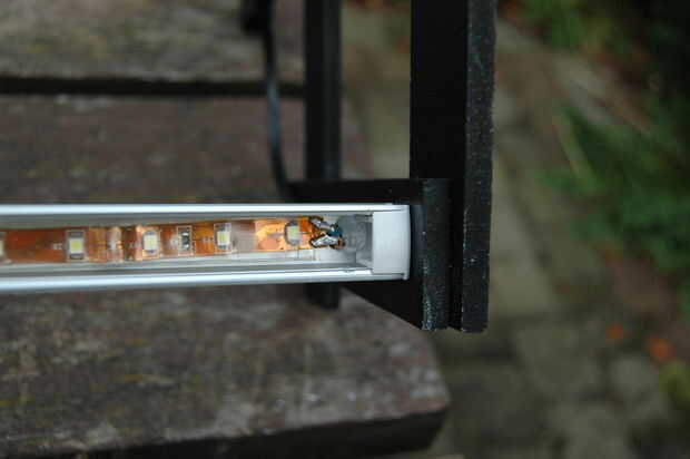 Estas tiras de LED tienen un pegamento de lado, así que asegúrese de pegar en el perfil