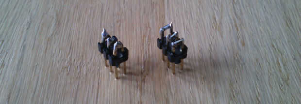 Como este circuito potencialmente podría dibujar más de 0,5 amperios por el puerto USB, he añadido un simple jumper que puede cambiar entre la operación de baja potencia (menos de 0,5 A) o de alta potencia (hasta 1 A). Este puente se muestra en la foto de arriba: el encabezado derecho tiene 68 Ohm, 100 Ohm y resistencias de 68 ohmios, mientras que el encabezado izquierdo tiene resistencias de 0 ohmios (simplemente soldar los puntos de conexión juntos). Estas resistencias son resistencias R41, R46 y R47 en el esquema.