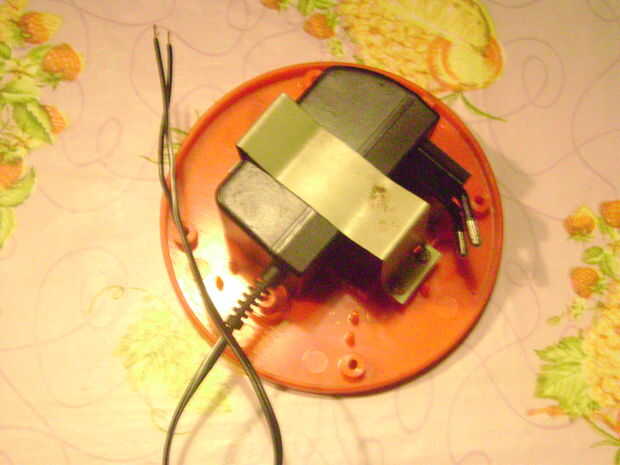 Después cuidadosamente "destripado" lámpara quitando casi todos los componentes y dejando prácticamente sólo el interruptor de encendido y la estructura, he empezado a dar cabida a los nuevos componentes a partir del transformador que presentado como muestra en la figura, tratando de colocar para evitar tocar el interruptor que sobresale internamente es bastante.