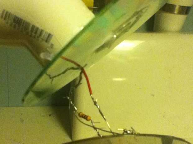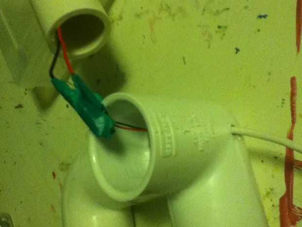 Ahora el cableado en el CD debe ser completado. Perfore un agujero en la base de su soporte de PVC. Alimente el cable a través de ese agujero a la parte superior del soporte.