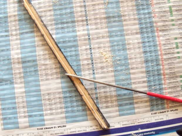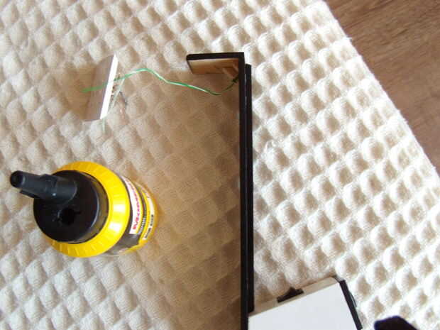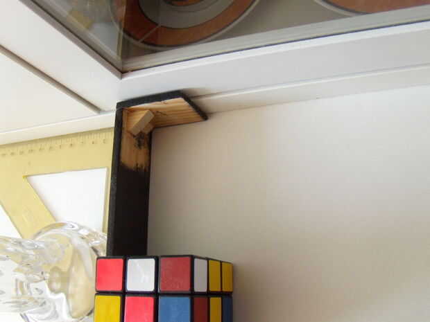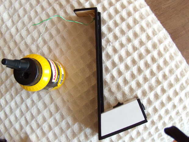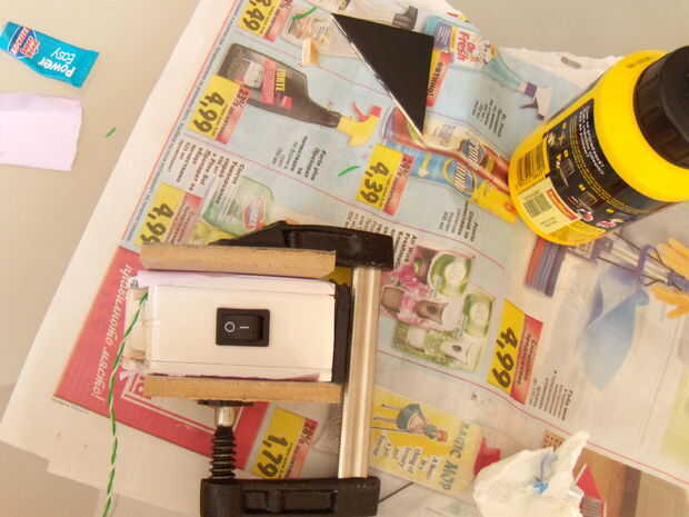 Conseguir todas las partes, el pegamento de madera, un triangular y comenzar a pegar las piezas. Utilice el triangular para pegar la parte superior de la lámpara al vástago, pegamento a 90 grados.