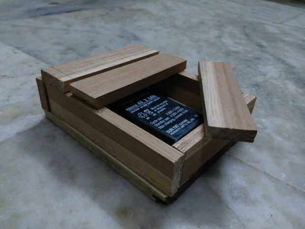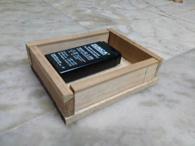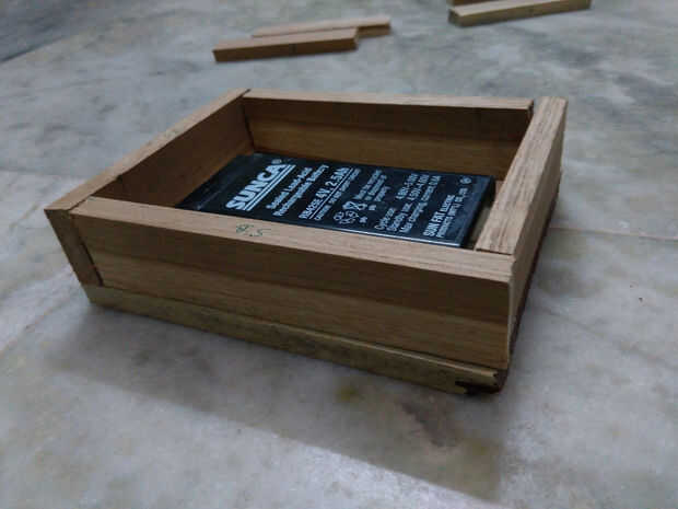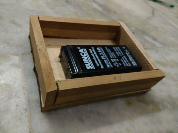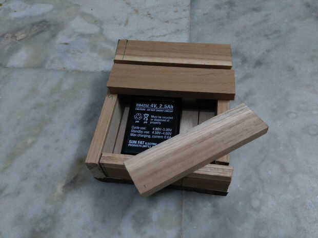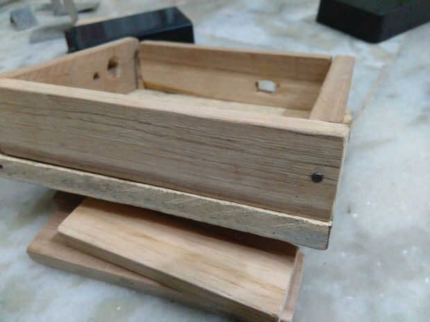 Aquí vamos a hacer la base de la lámpara led así tomar la teca madera y arreglar el el bosque como se muestra en imágenes.. .just usar clavos de hierro para fijar la base pero ahora no cerrar la parte superior de la base ya que tienes que hacer circuito conexiones ahora a fijan la parte inferior y paredes laterales con clavos de hierro permanentemente...