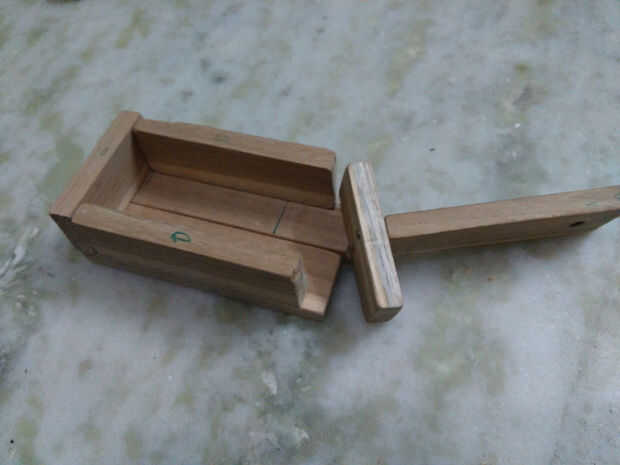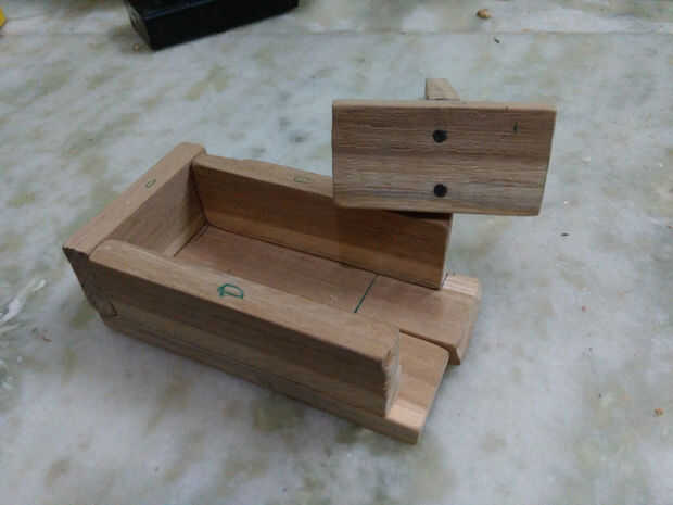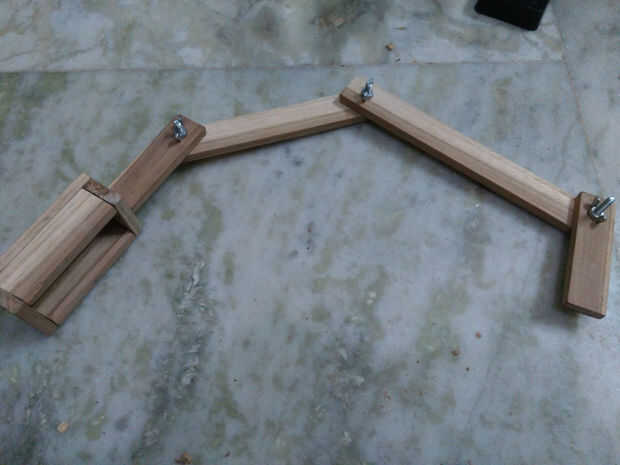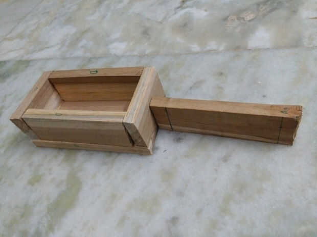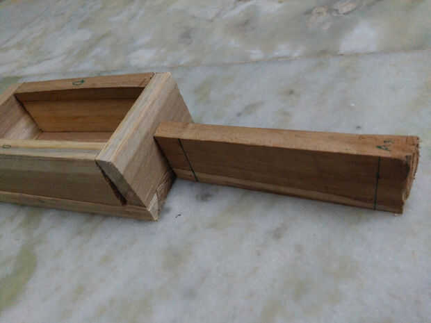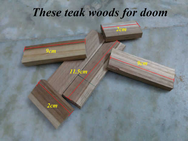 Hacer el doom es última parte de la madera el trabajo... este paso también poco mordida simple... siguente solo colocarse dos madera 11,5 cm y 2cm, madera de 9 cm en la parte superior... antes va a fijar con clavos de hierro sólo tomar una madera de 2 cm entonces fijar con este último brazo y hacer pequeño agujero en esa madera teca 2 cm para dar espacio para alambre