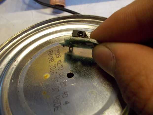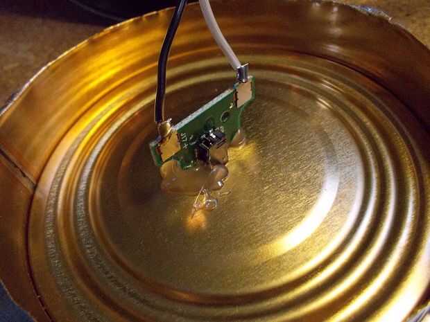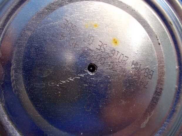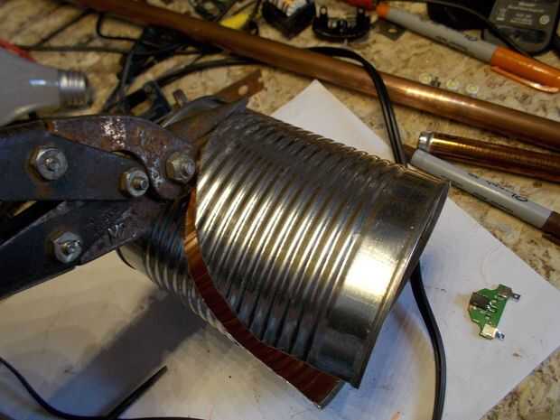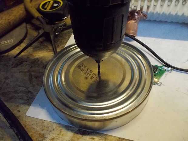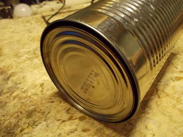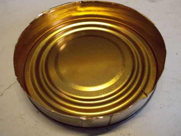 Para hacer la parte trasera, tomar la lata más pequeña y corte en la última costilla.