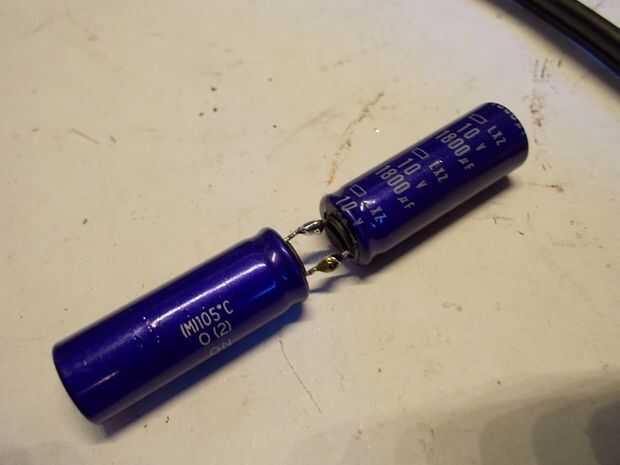 He utilizado dos capacitores de 1800uF en derivación asi me dio un total de 3600uF y da un extendido se descolora hacia fuera.