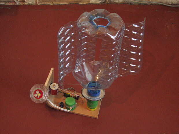 La lámpara LED es multipropósito porque tiene 3 modos de funcionamiento. Cuando el parpadeo que LED es la manera que se muestra en el esquema, los LEDs y tiene una lámpara de lectura. Cuando el LED parpadeante se inserta hacia atrás, es sólo un LED (en serie con el intermitente) y tienes una linterna (muy luminoso). Si elimina el parpadeo del LED, 2 LEDs (en serie), y tiene una lámpara de noche. Creo que hace el proyecto atractivo para aficionados a los hobbys diy y experimentadores (mecánica, óptica, electrónica). Puede ser fácilmente escalar y modificado sustituyendo el motor de la c.c. con uno más grande (más poderoso) y añadiendo otra batería (véase también siéntase libre de hacer experimentos).
