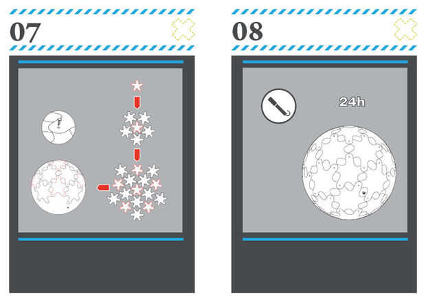 8 una vez finalizada la esfera, inflar el balón de playa hasta que las figuras se adaptan perfectamente a la bola. Finalmente dejamos las figuras secar durante 24 horas más.