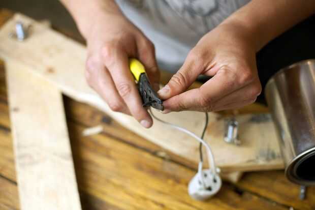Tomar el zócalo del bulbo y tira de los extremos de sus cables. Pase los cables por los dos agujeros en la parte inferior de la lata y atarlos juntos para mantener el casquillo de la bombilla en su lugar.
