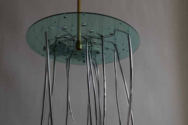 También encuentra pegamento caliente entre las piernas positivas y negativas de LED para mantener dentro de la temática orgánica. Utilizando la típica cinta aislante negra no ves bien con el tubo de goma!